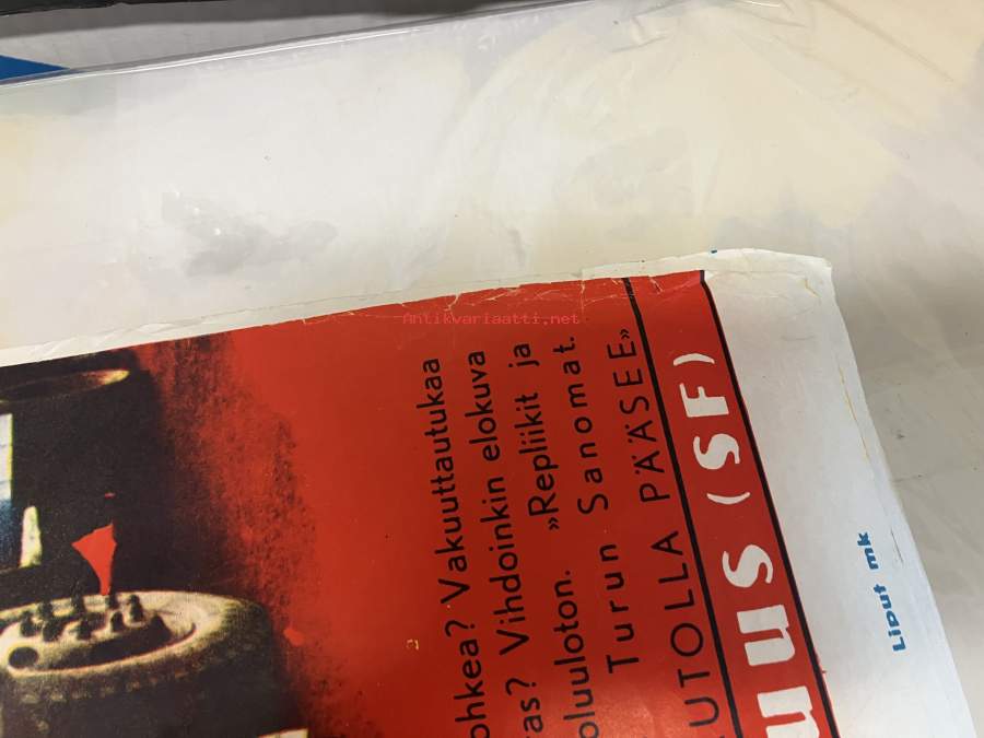 44 x 68 cm elokuvajuliste. Suomen Filmiteollisuuden elokuva Autotytöt, pääosissa Maija Karhi, Ritva Vepsä, Helge Herala, Leo Jokela Vuokko Docktare, Sinikka Hannula, Helge Herala, Sakari Jurkka, Ville-Veikko Salminen, Kullervo Kalske, Kauko Kokkkonen, Toivo Mäkelä, Heimo Lepistö. "Elokuva maanteittemme ongelmalapsista" "Rahalla saa - Autolla pääsee".