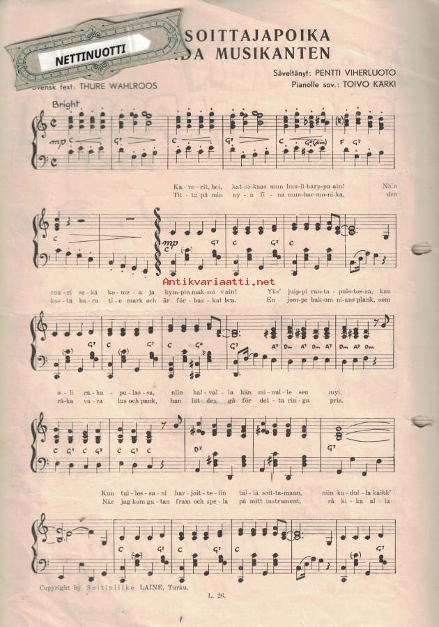 Viherluoto säv. Pianolle sov. Toivo Kärki, sanat Harry Etelä