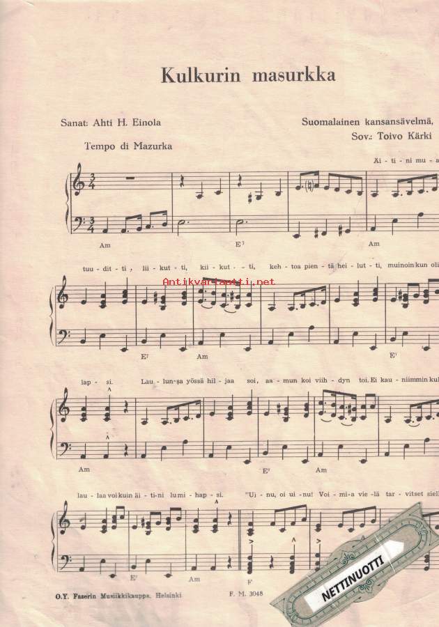 Suomalainen kansansävelmä.-Postitus 3,80