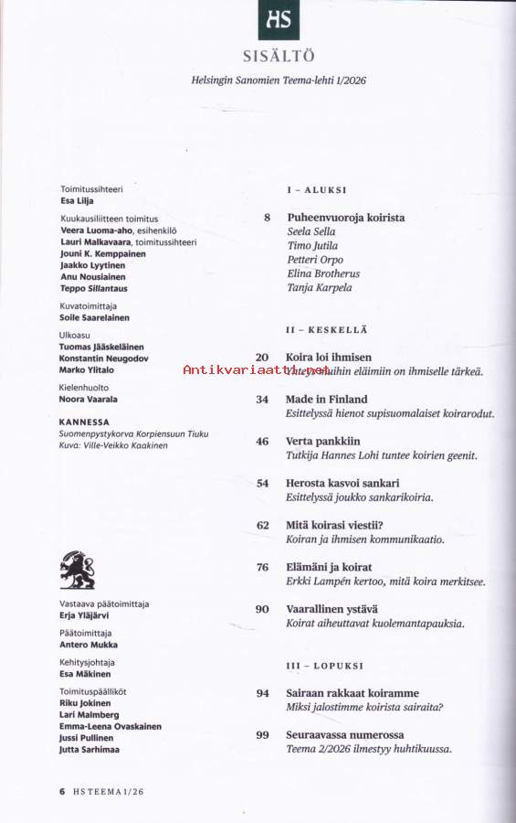 HS Teema 2026 N:o 1. Koirat. Ihmisen paras ystävä on koira.