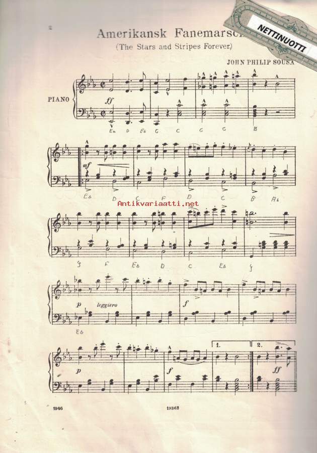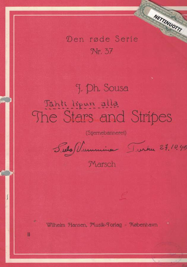 Tähtilipun alla. Pianolle.Sointumerkkejä lisättu käsin.- Postitus 3,80