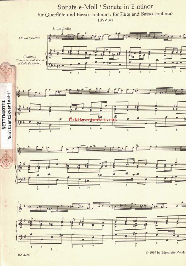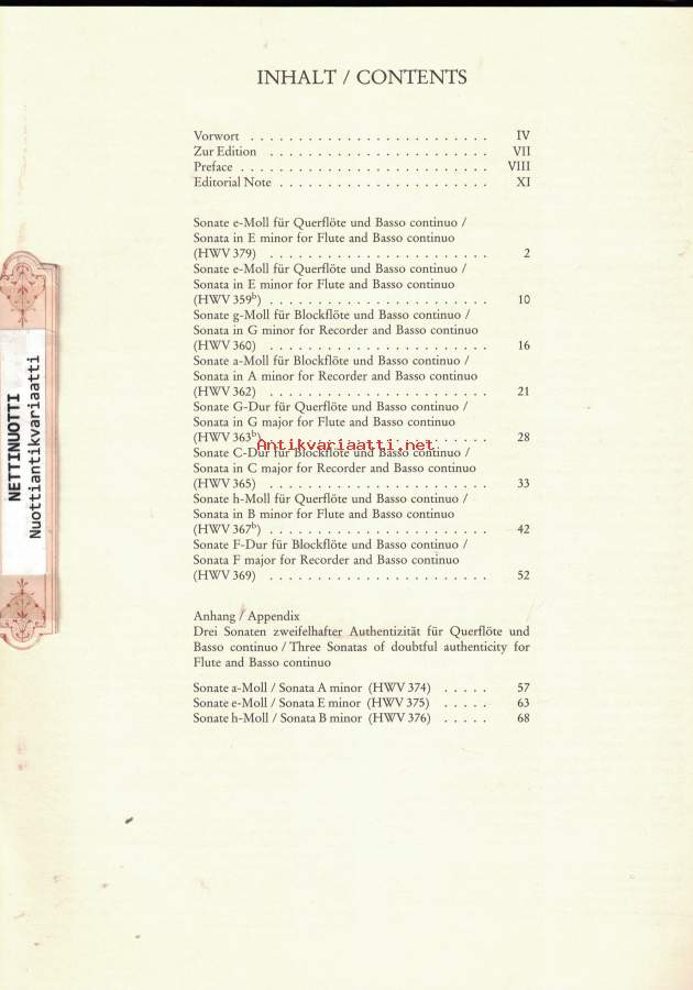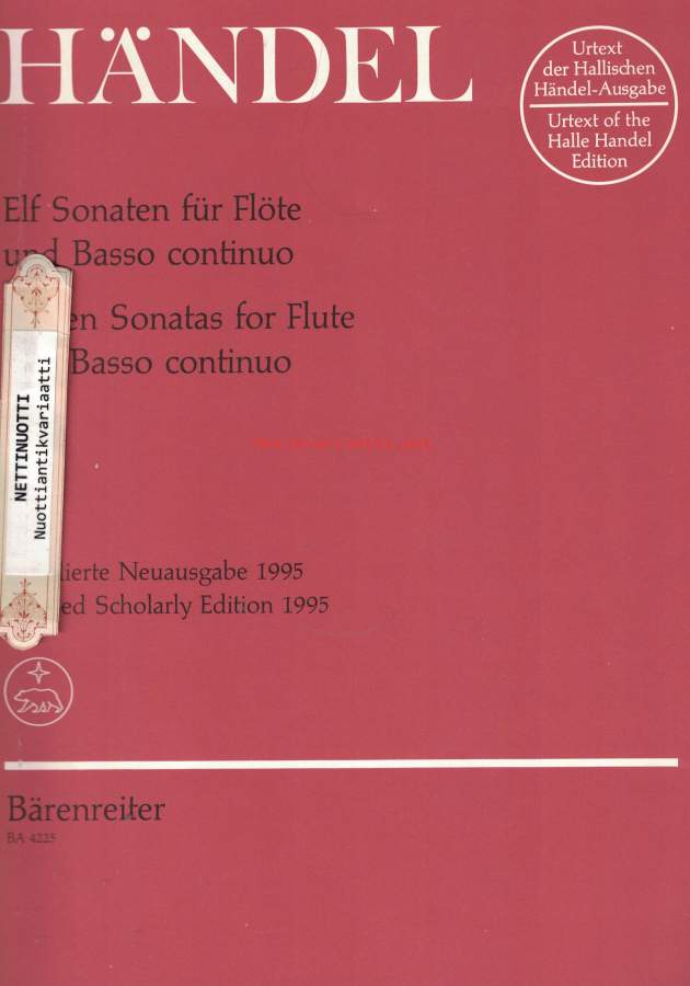 Handel Barenreiter Urtext: (Eleven Sonatas for Flute and Basso continuo)- Suuri Helposti kuori