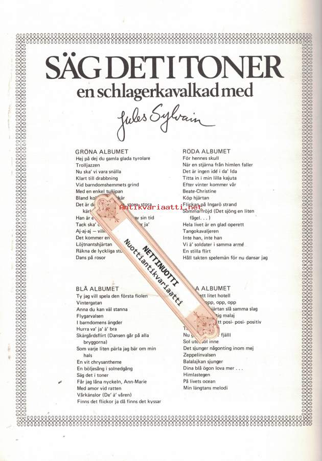Yht. 15+15 sävelmää, mm: För hennes skul - Beate-Christine - Tangokavaljeren - En stilla flirt - Vintergatan - Flygarvalsen - Skärgårdsflirt - Säg det i toner - Med amor vid ratten - Vårkänslor - Finns det flickor ja då det finns det kyssar - ym.- Suuri Helposti kuori