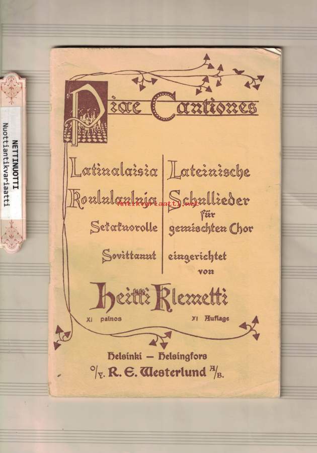 Sekakuorolle sovittanut Heikki Klemetti = Lateinische Schullieder für gemischten Chor eingerichtet von Heikki Klemetti.- Pieni Helposti kuori