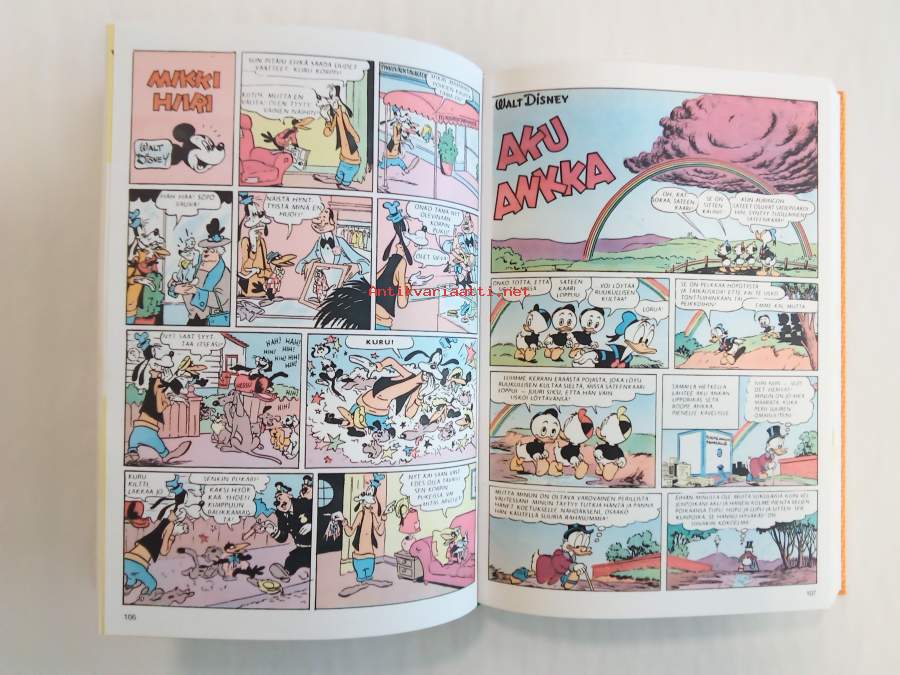 Näköispainos klassisista Aku ja Mikki sarjakuvista.