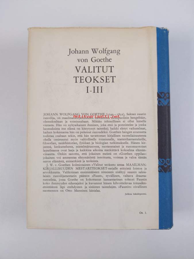 Hyvä. Hieman kulumaa kansissa, hieman rispaantumaa reunoilla ja kulmissa, selkämyksessä hieman vinoutta. Kansipaperin kunto: jonkin verran kulumaa/pienoisia repeämiä
