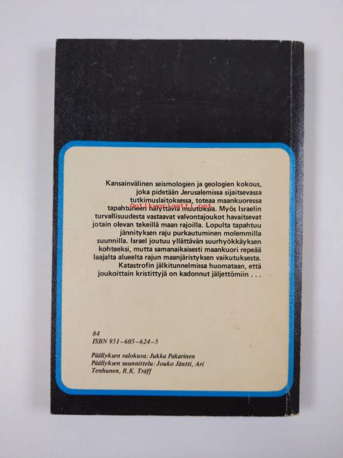 Hyvä. Tarkempi kuntoluokka: K3- ; Pientä kulumaa kansissa, selkämyksessä yksi lukutaite