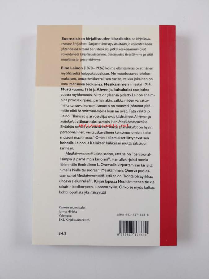 Valitut teokset : valikoima proosateoksia / Eino Leino ; johdannon kirj. Vilho Suomi.Sisältö:Sisältö: Elämäni kuvakirja, Jaana Rönty, Mesikämmen,
