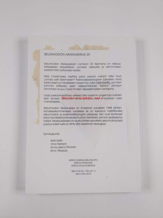 Muu(t) tekijä(t): Kirsti AaltoSarja: Sielunhoidon aikakauskirja 20Asiasanat: itsetunto, usko, Jumala, sielunhoito, paha, narsismi, rakkaus, homoseksuaalisuus, itsetuho, toivo, pastoraaliteologia, lähimmäisenrakkaus, kärsimys