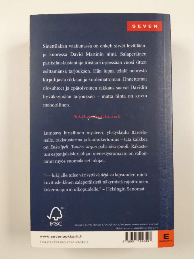 Muu(t) tekijä(t): Anu Partanen, Tarja HärkönenSarja: SevenAlkuteos: El juego del angelAsiasanat: maaginen realismi, Barcelona