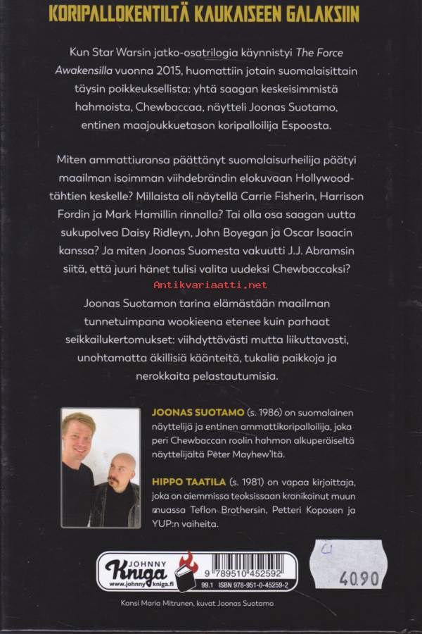 **Muistelmateos, joka kertoo, miten suomalaisesta koripalloilijasta tuli uusien Star Wars -elokuvien Chewbacca. Kirja valottaa kulissien takaista elämää Hollywoodissa ja näyttelijäntyötä ikonin roolissa.**Asiasanat: elokuvanäyttelijät, näytteleminen, elokuvat, fiktiiviset henkilöt, elokuvateollisuus, tieteiselokuvat, elokuvaus, Star Wars, Tähtien sota