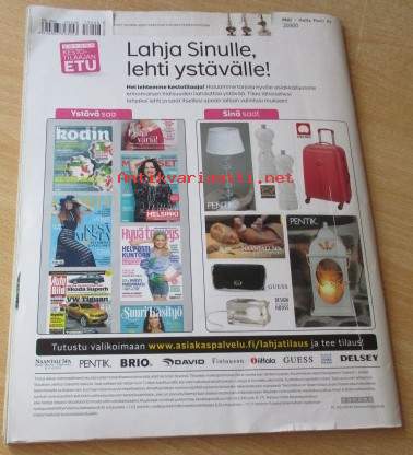 Kaava-arkit mukana lehdestä irti, lehti siisti ehjä, takakannessa leikattu pala pois yläreunasta, Postitus kirjepakettina