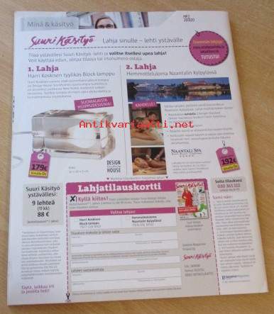 kuvitettu, Kaava-arkit mukana kiinni lehdessä,lehti siisti ehjä, ei omisteita, Takakannesta yläreunasta leikattu pala pois, Postitus kirjepakettina