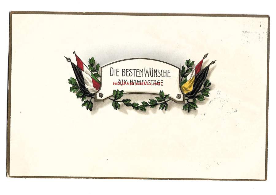 Saksalainen onnittelukortti lippupostikortti postikortti kohopainokortti kulkenut Feldpost kenttäpostia 1916