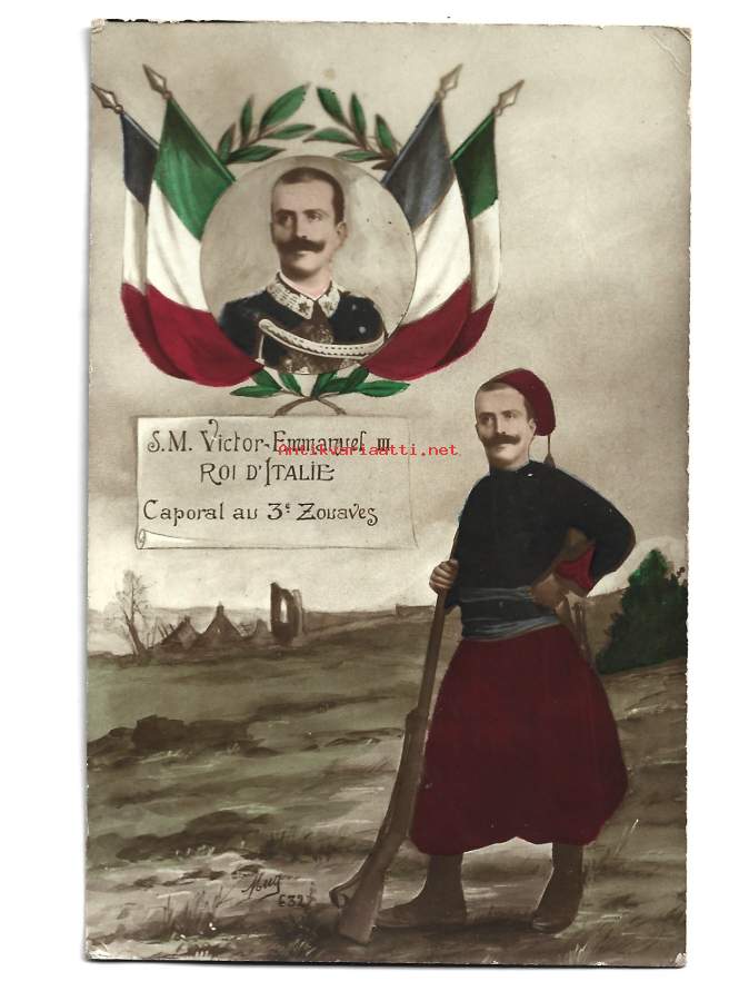 Italian kuningas Viktor Emmanuel III sotilaspostikortti lippupostikortti postikortti kulkenut