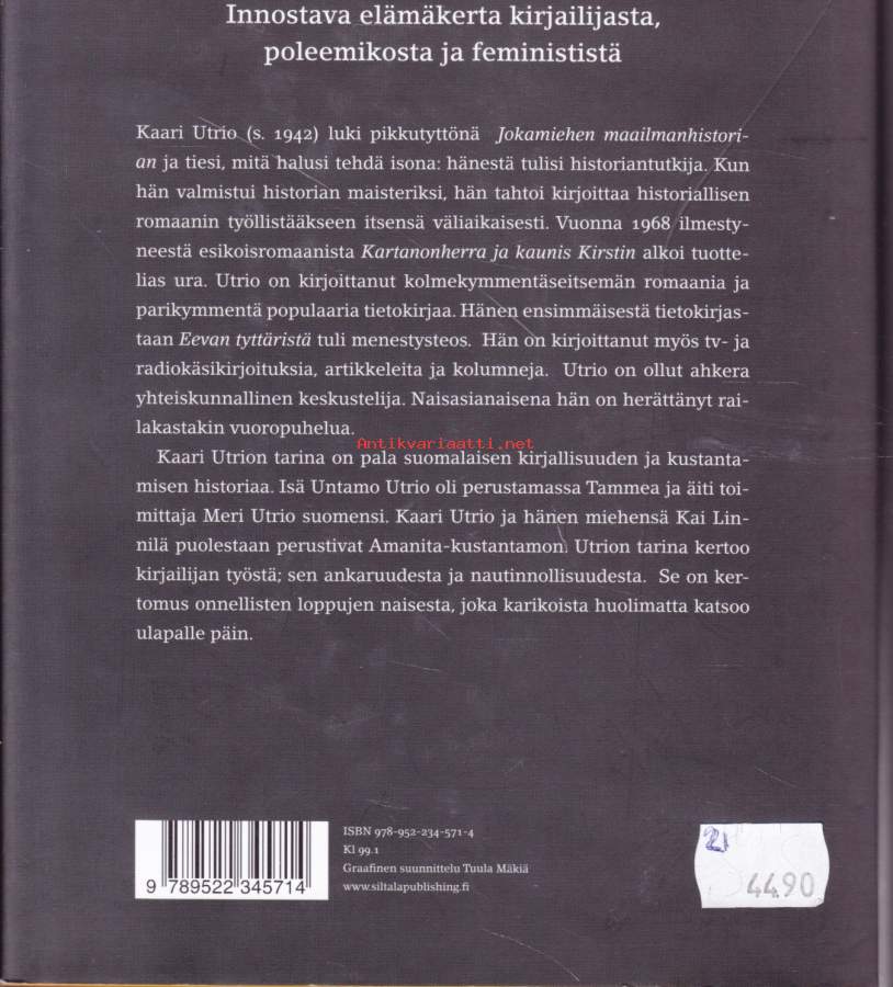 Kaari, 2021. Kirjailija Kaari Utrion elämä. Innostava elämäkerta kirjailijasta, poleemikosta ja feminististä.