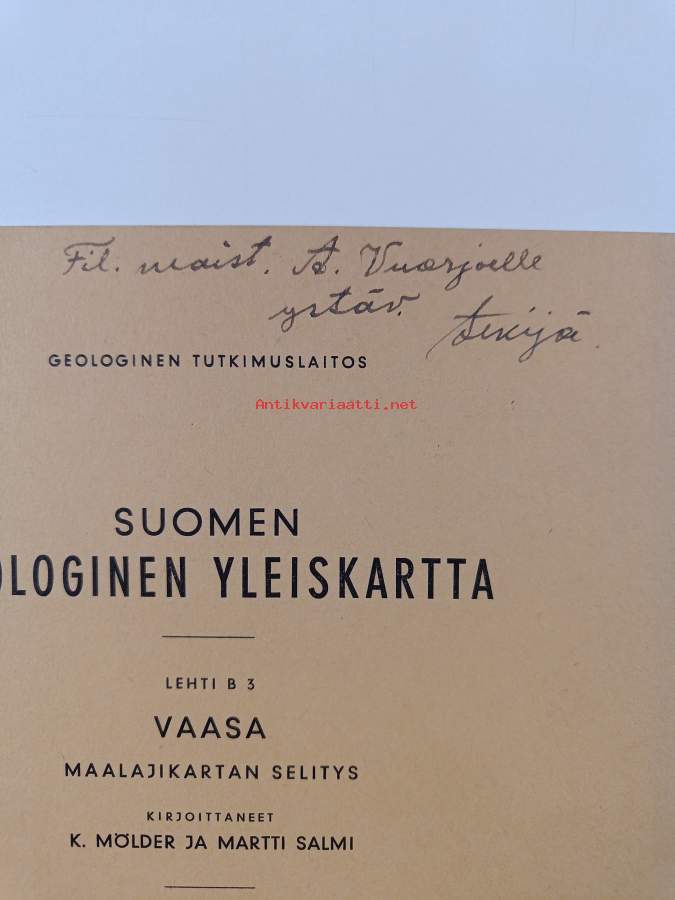 Muu(t) tekijä(t): Karl Mölder, Martti SalmiSarja: Suomen geologinen yleiskartta Lehti B 3; maalajikartan selitysAsiasanat: geologia, geologiset kartat, maalajit, geologi, jordarter, geologiska kartor
