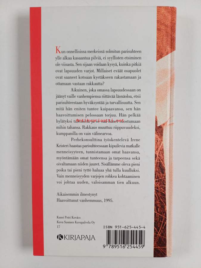 Merkinnät: omistajamerkintä leikattu pois etulehden ylälaidastaAsiasanat: riippuvuus, parisuhde, lapsuus, rakkaus