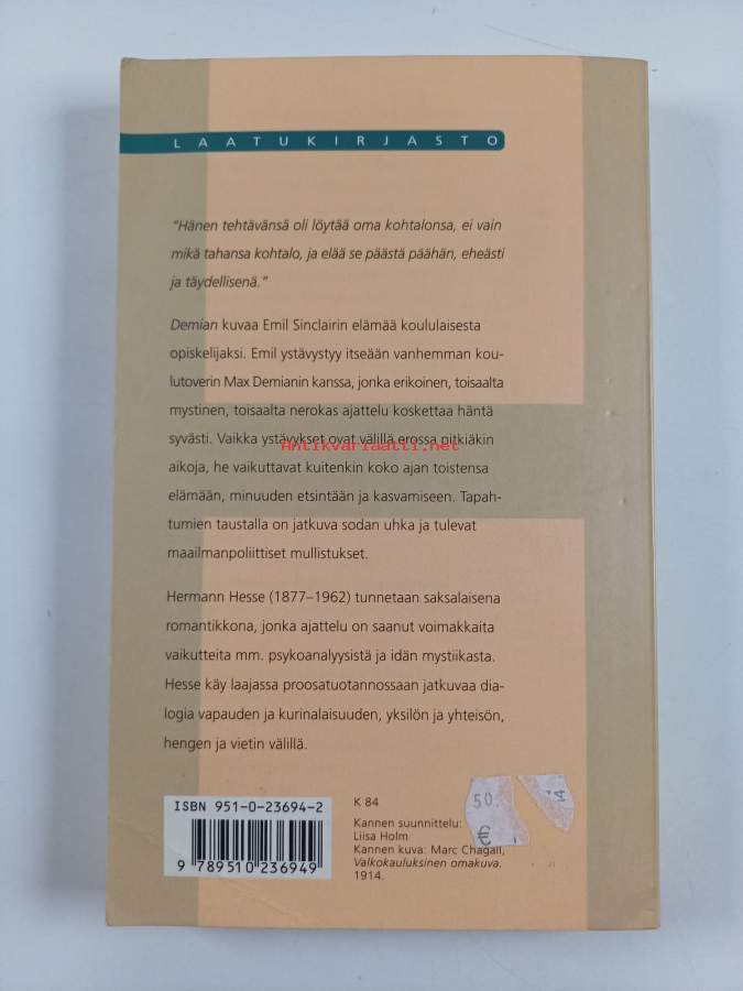Demian - Emil Sinclairin nuoruudentarina. ( Kehitysromaani, itsetutkiskelu, sisäinen rauha, Nobel-kirjailijat )