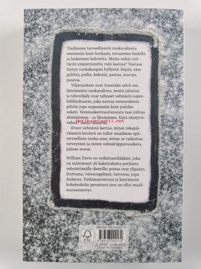 Muu(t) tekijä(t): Sari-Anne AhvonenAlkuteos: Wheat bellyAsiasanat: terveysvaikutukset, ruokavaliot, painonhallinta, viljakasvit, gluteeni, vehnä, gluteeniton ruokavalio, sairaudet