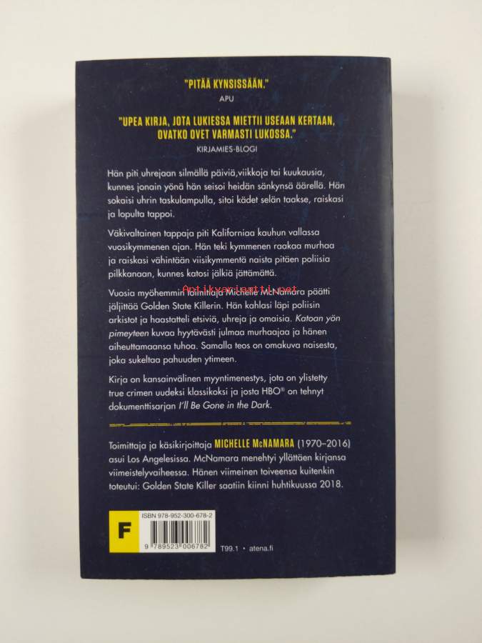 Muu(t) tekijä(t): Aura NurmiAlkuteos: I'll be gone in the darkAsiasanat: tutkimus, murha, sarjamurhaajat, selvittämättömät rikokset, rikostoimittajat, bloggaajat, harrastajatutkijat