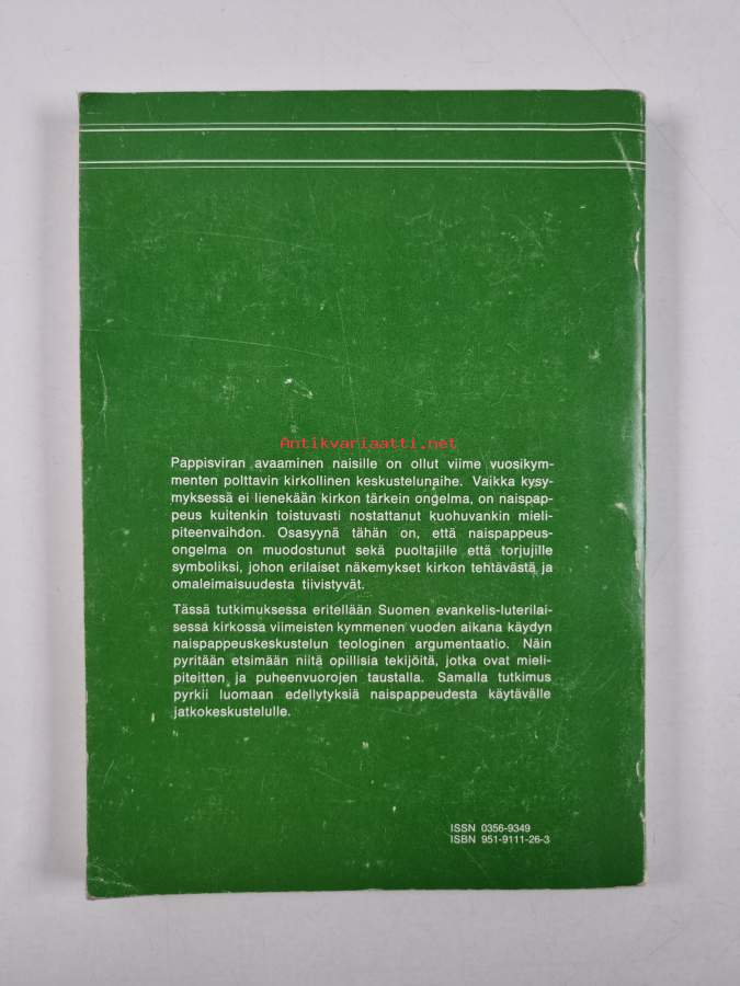 Nainen ja pappisvirka : argumentaatioanalyysi Suomen evankelis-luterilaisessa kirkossa käydystä naispappeuskeskustelusta