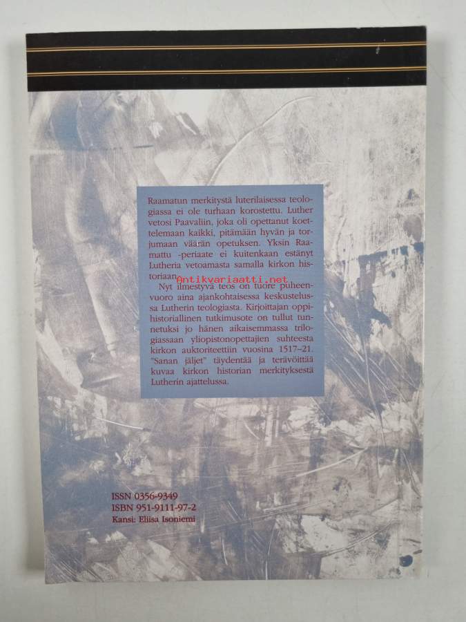 Sarja: Suomalaisen teologisen kirjallisuusseuran julkaisuja 185Asiasanat: kirkkoisät, luterilaisuus, kirkkohistoria, teologia, merkitys, auktoriteetti, reformaatio