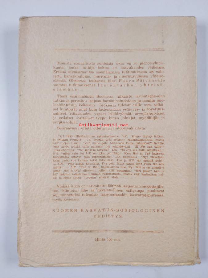Tyydyttävä. Tarkempi kuntoluokka: K2+ ; Hieman kulumaa, hieman taitejälkeä, pienoista tahraisuutta kansissa, kansien reunoilla taittumaa ja rispaantumaa (koska ohuehkot kannet sivuja leveämmät), sivut vielä leikkaamatta auki eli lukematon kirja, selkämyksessä hieman vinoutta