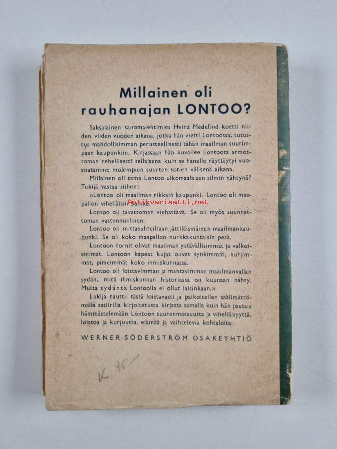 Sellainen oli Lontoo - Maailman suurimman kaupungin loisto ja kurjuus, 1942.