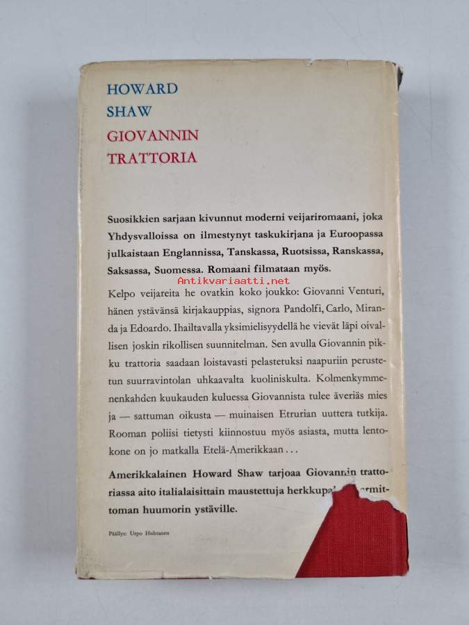 Hyvä. Hieman kolhua reunoilla ja kulmissa, selkämyksessä vinoutta. Kansipaperin kunto: repeämiä/kulumaa