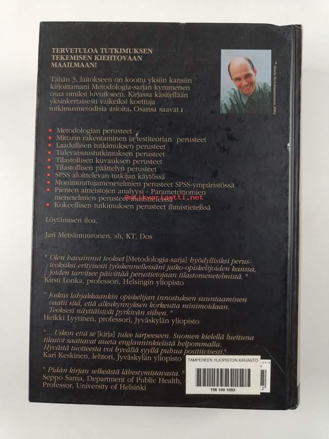 Asiasanat: luotettavuus, tulevaisuudentutkimus, tilastotiede, havainnointi, päättely, testaus, tilastot, tutkimusmenetelmät, toimintatutkimus, kvalitatiivinen tutkimus, metodologia, graafinen esitys, haastattelututkimus, todennäköisyys, etnografia, tiedonlähteet, tutkimustulokset, tilastomenetelmät, oppaat (teokset), jakaumat, ihmistieteet, analyysimenetelmät, monimuuttujamenetelmät, otanta, empiirinen tutkimus, kvantitatiivinen tutkimus, mittarit (mittaus), psykometriikka, SPSS, faktorianalyysi, hypoteesit, kokeelliset menetelmät, mittausmenetelmät, reliabiliteetti, validiteetti, fenomenografia, grounded theory, korrelaatio, keskiarvot, regressioanalyysi, varianssianalyysi, frekvenssit, hajonta