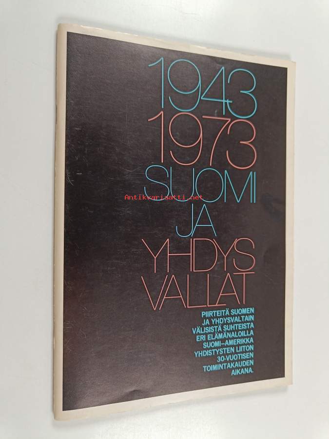 Koko nimi: 1943-1973 Suomi ja Yhdysvallat : piirteitä Suomen ja Yhdysvaltain välisistä suhteista eri elämänaloilla Suomi-Amerikka Yhdistysten Liiton 30-vuotisen toimintakauden aikana