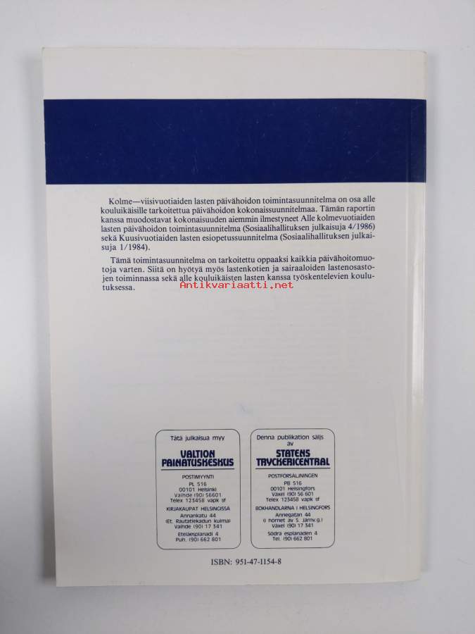 Sarja: Sosiaalihallituksen julkaisuja 1988,2Asiasanat: päivähoito