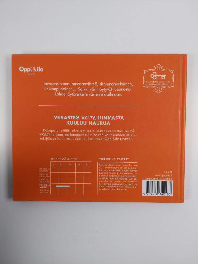 Muu(t) tekijä(t): Saara Pääkkönen, S. BadevantMerkinnät: omistajamerkintäSarja: Oppi & ilo : tieteet ja taiteetAlkuteos: Couleurs de la natureAsiasanat: luonto, värit