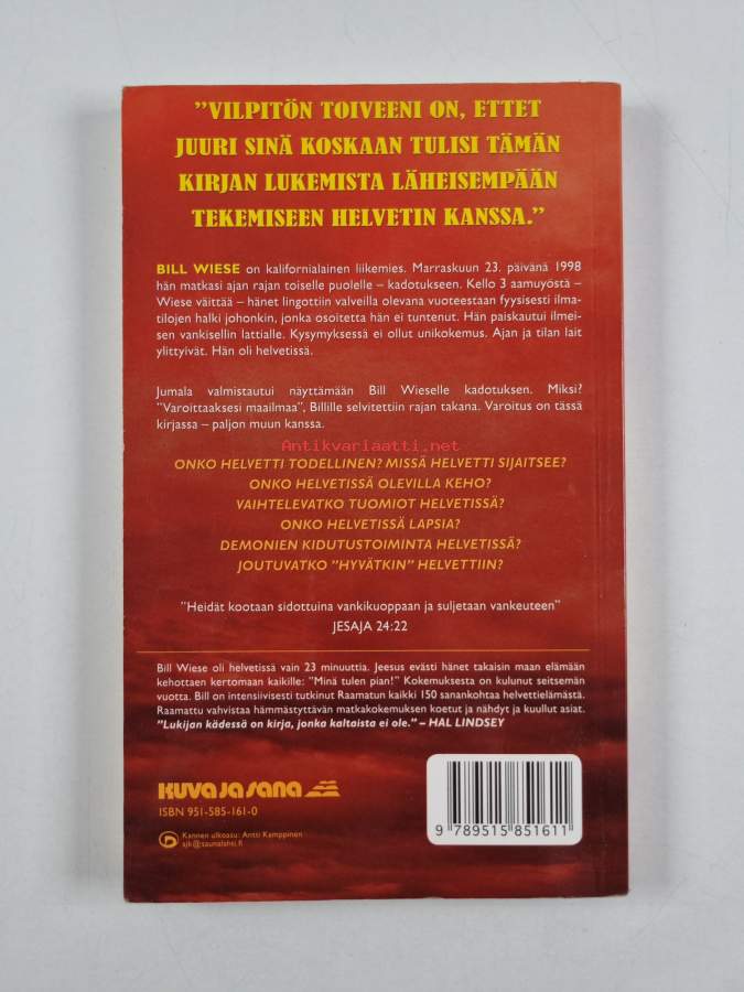 Muu(t) tekijä(t): Hannu RossiAlkuteos: 23 minutes in hell. One man's story about what he saw, heard, and felt in that place of tormentAsiasanat: demonit, uskonnolliset kokemukset, kuolemanjälkeinen elämä, Helvetti, kadotus