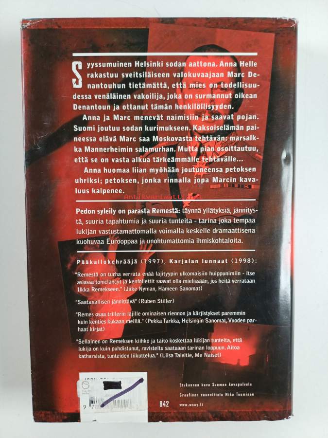 Hyvä. Tarkempi kuntoluokka: K3+ ; Hieman kolhua kulmissa, selkämyksessä hieman vinoutta. Kansipaperin kunto: jonkin verran kulumaa/pienoisia repeämiä