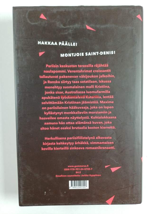 Hyvä. Tarkempi kuntoluokka: K3+ ; Hieman kulumaa kansissa, selkämyksessä hieman vinoutta. Kansipaperin kunto: pientä kulumaa