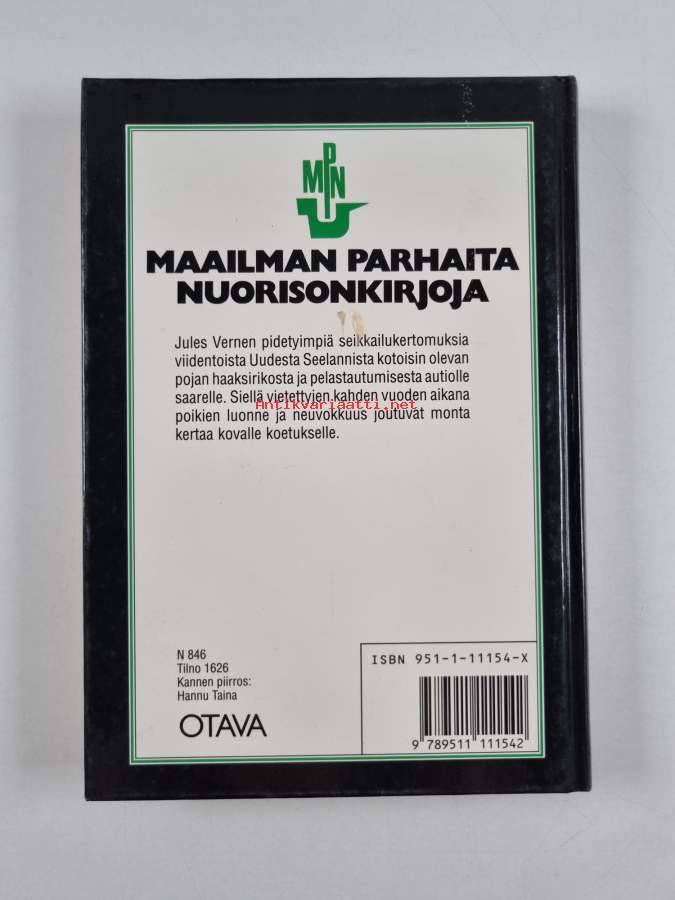 Muu(t) tekijä(t): Anni SwanSarja: Maailman parhaita nuorisonkirjojaAlkuteos: Deux ans de vacancesAsiasanat: haaksirikot, nuortenkirjallisuus, seikkailukirjallisuus, autiot saaret, robinsonadit