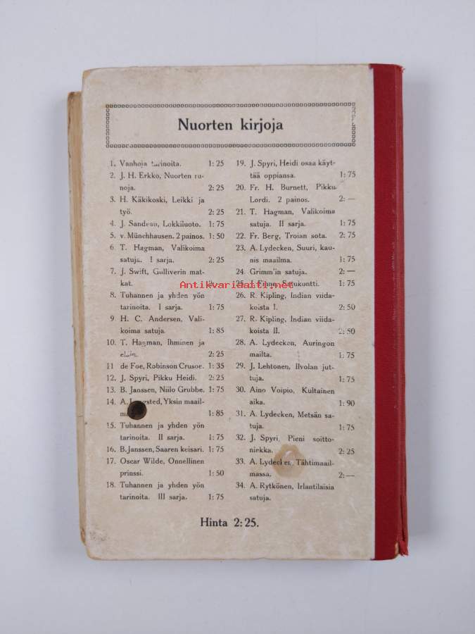 Tyydyttävä. Tarkempi kuntoluokka: K2+ ; Hieman repeämää reunoilla ja kulmissa, hieman tahraisuutta takakannessa, selkämyksessä hieman vinoutta