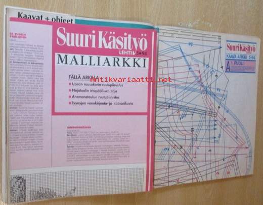 Suuri Käsityö lehti N:o 5 1994 kaava-arkit ja malliarkki mukana