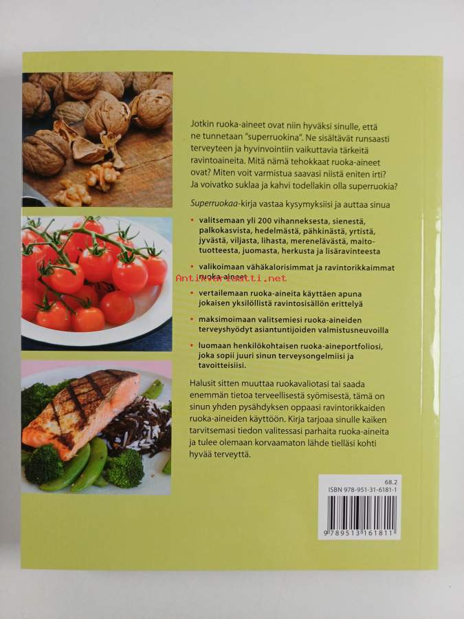 Superruokaa helposti ja edullisesti, 2013. 1.p. Kirja sisältää 180 houkuttelevaa ruokaohjetta, joilla voit suojella elimistöäsi ja torjua vanhenemisen merkkejä.