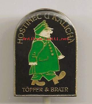 Hostinec U Kalicha -ravintolan pinssi, jota myydään keräilyesineenä. Pinssissä on kuvattuna sotamies Švejk, joka on tšekkiläisen kirjailija Jaroslav Hašekin tunnettu hahmo. Hostinec U Kalicha on tunnettu ravintola Prahassa, joka esiintyy romaanissa Kunnon sotamies Švejk.