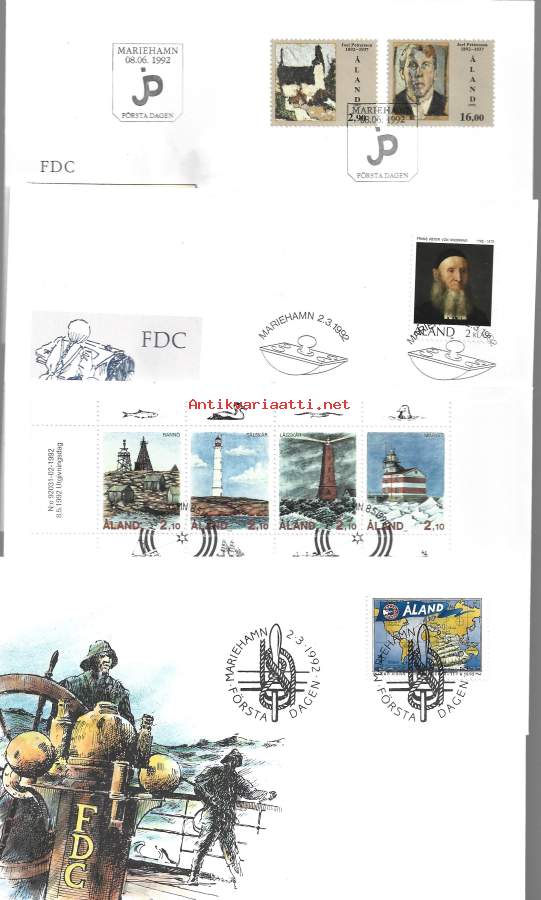 Åland / Ahvenanmaa FDC -kuoria 1992 luku 4 kpl erä