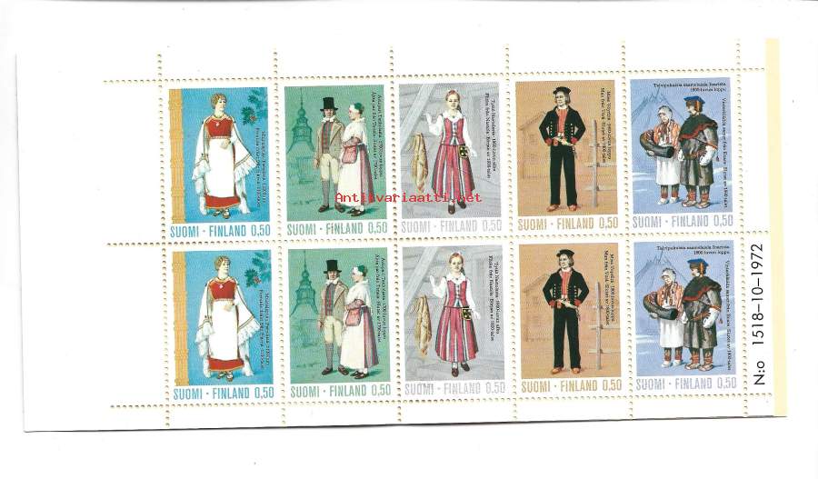 Suomen muinais- ja kansanpuvut - postimerkkivihko postituoreita * n:o 1518 - 10 - 1972