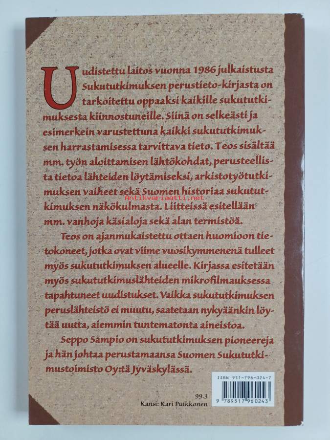 Asiasanat: henkilöhistoria, sukututkimus, suvut, arkistot, tiedonlähteet, oppaat (teokset)