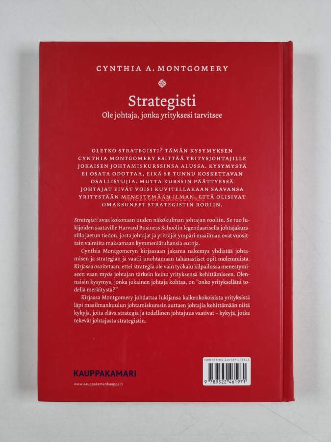 Muu(t) tekijä(t): Mia HeiskanenAlkuteos: The strategistAsiasanat: yritykset, johtaminen, johtajat, johtajuus, liiketoiminta, yritysstrategiat, organisaatiot, strateginen suunnittelu, strateginen johtaminen, leadership, strategiat, strategiatyö, strategy, Corporate strategy, organization, and change