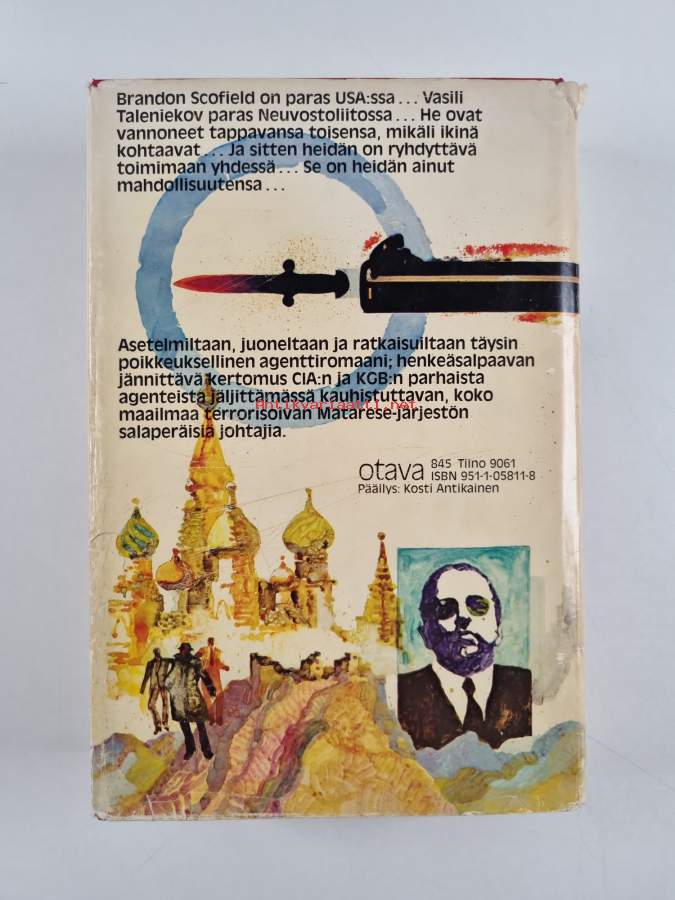 Hyvä. Hieman kolhua reunoilla ja kulmissa, pienoista nuhruisuutta, selkämyksessä vinoutta. Kansipaperin kunto: joitain repeämiä/kulumaa