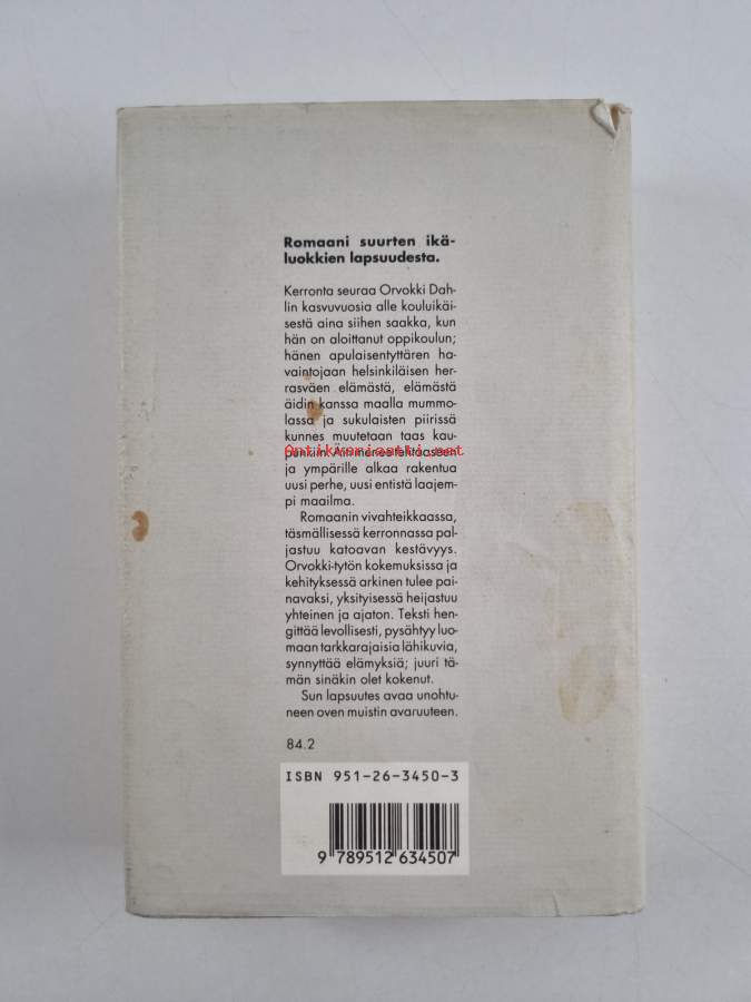 Tyydyttävä. Hieman kulumaa reunoilla ja kulmissa, pientä nuhruisuutta kansissa, pientä repeämää selkämyksessä. Kansipaperin kunto: joitain repeämiä/kulumaa