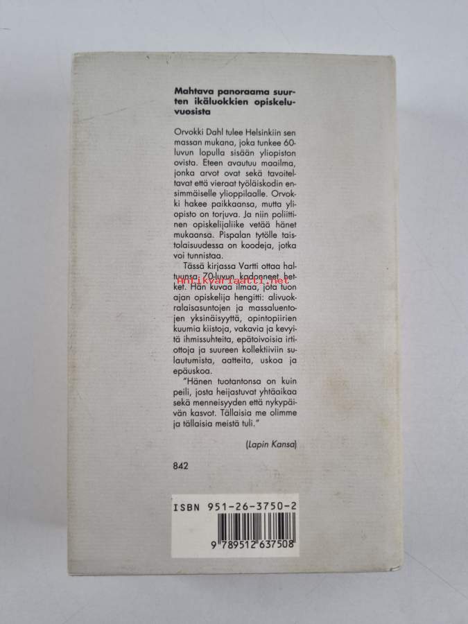 Hyvä. Tarkempi kuntoluokka: K3+ ; Hieman kolhua selkämyksen alareunassa, selkämyksessä hieman vinoutta. Kansipaperin kunto: jonkin verran nuhruisuutta & tahraisuutta