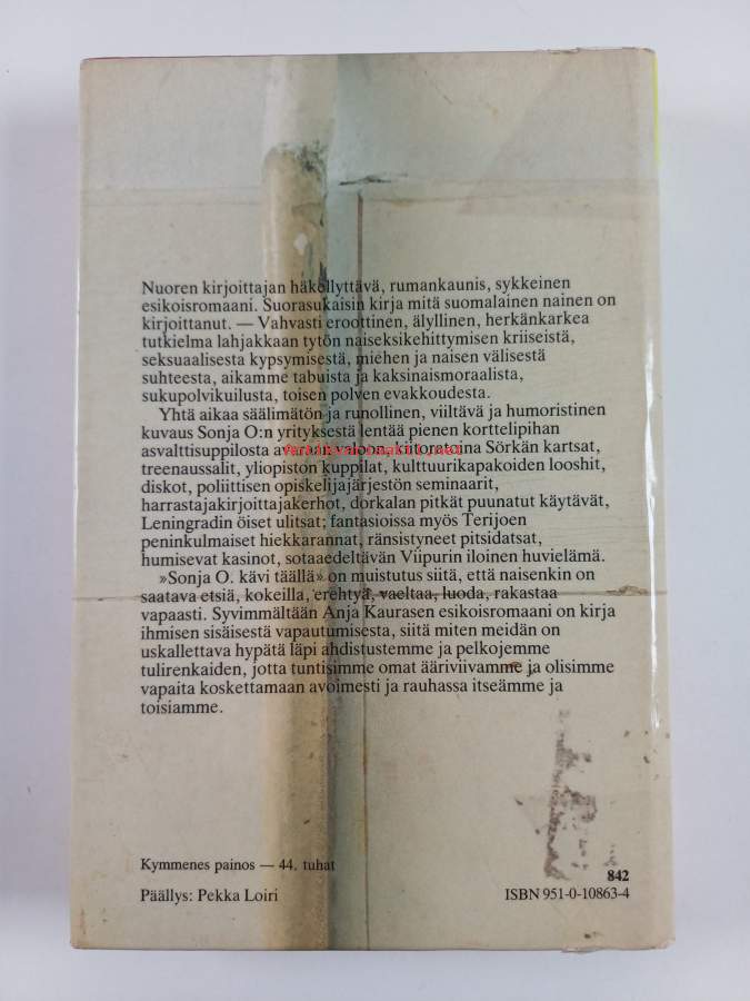 Tyydyttävä. Pientä käytön jälkeä kansissa, selkämyksessä aavistus vinoutta, kirjaston poistokirja, kontaktimuovipäällystys, sidos löystynyt ja näkyvissä. Kansipaperin kunto: jonkin verran kulumaa/pienoisia repeämiä